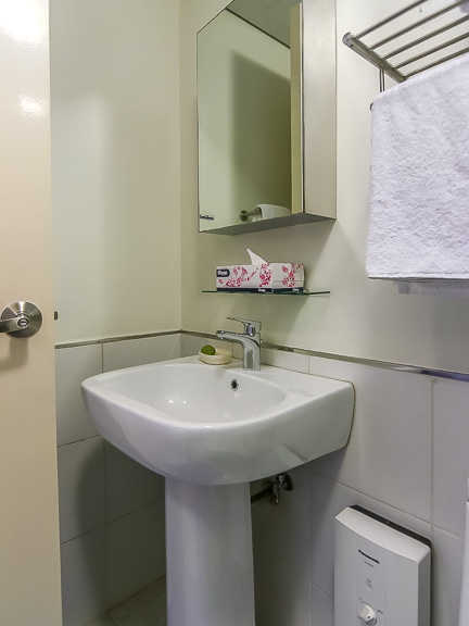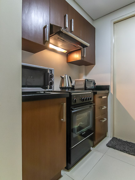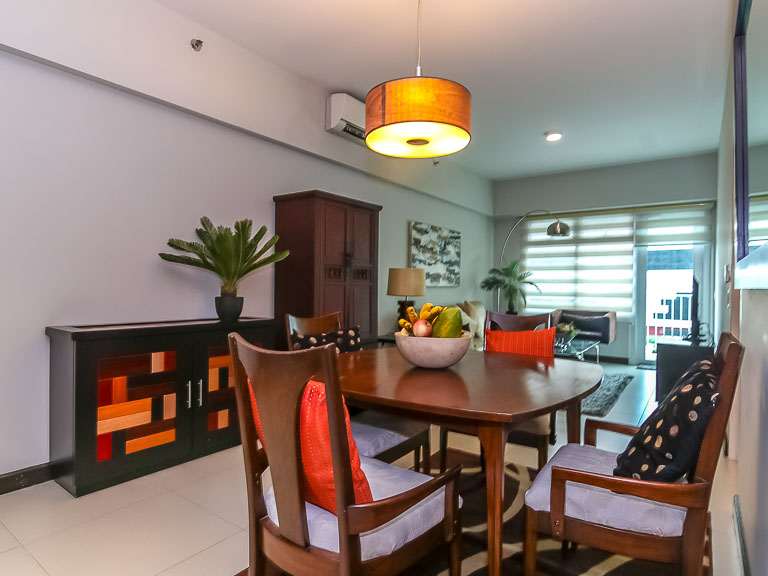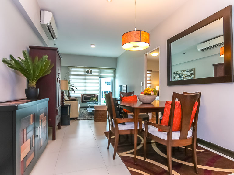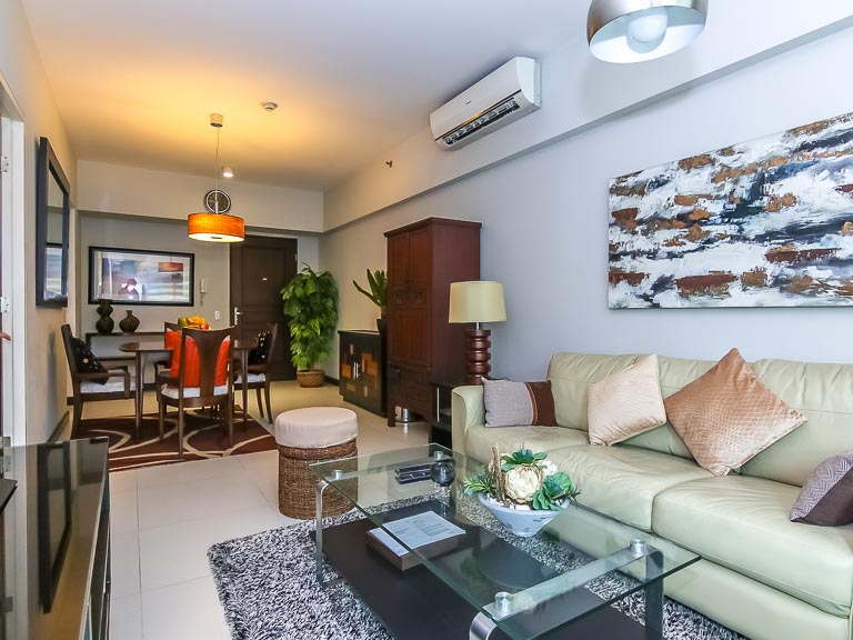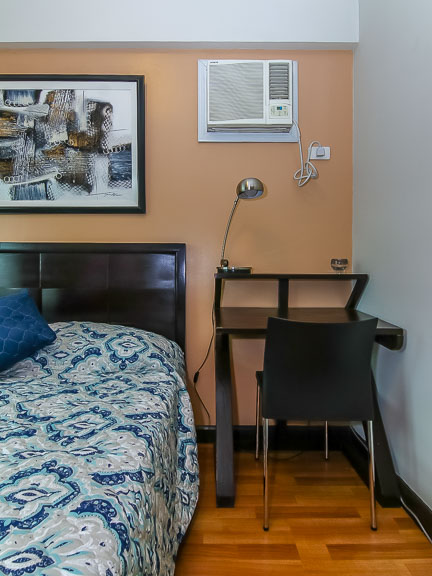 - This unit is in cloud paint interior and sepia-colored accent walls, and matte tile flooring. The bedroom is in wood-like vinyl tile flooring. Air conditioning are split and window type