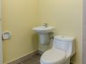- Mostly shiny vinyl flooring, clean buttermilk paint interiors