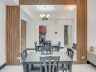 The dining room which is an extension of the living room contains a wooden four chair dining table set