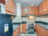 The kitchen has a refrigerator, a microwave oven, a four burner electric stove with a kitchen exhaust right above it and adequate cabinet storage space