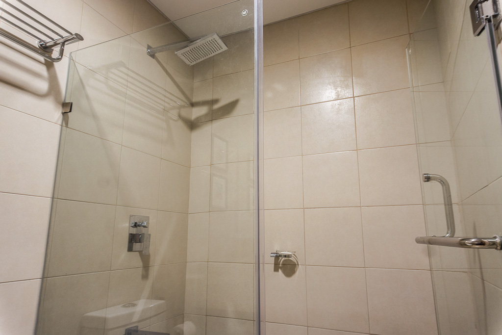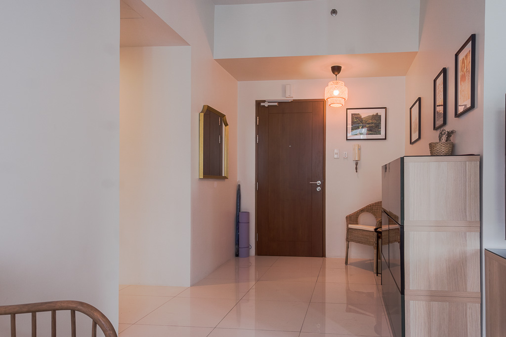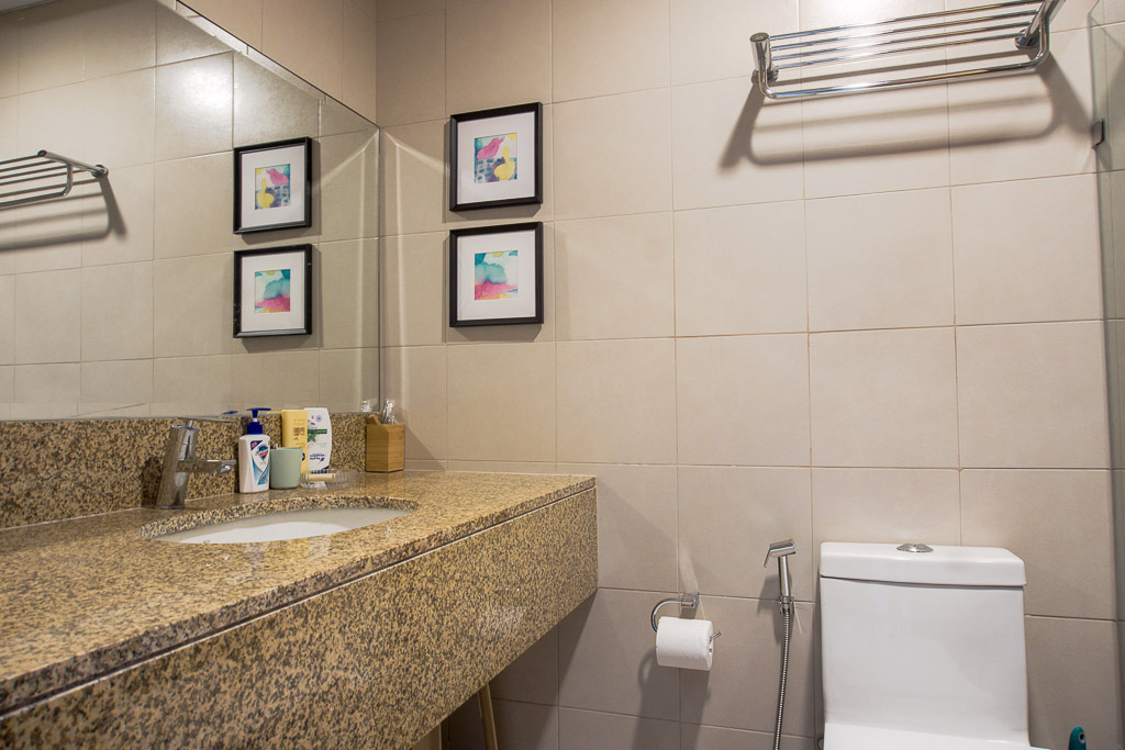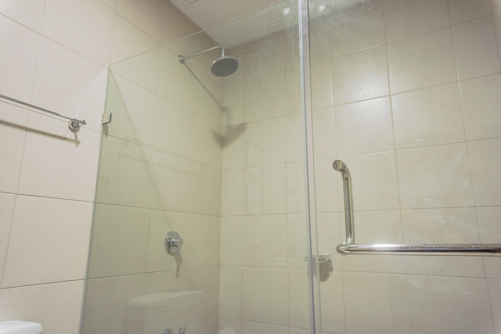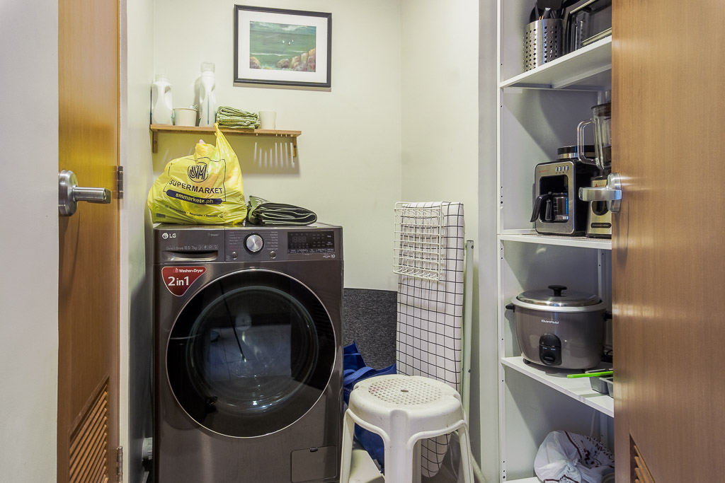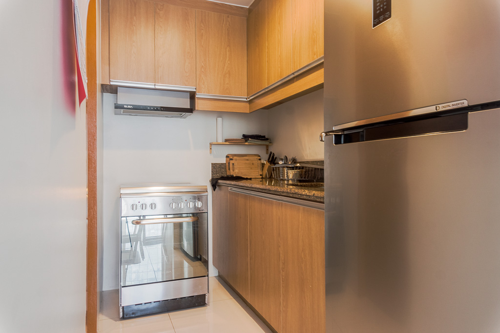 • Kitchen is equipped with two door refrigerator, water heater and range with range hood