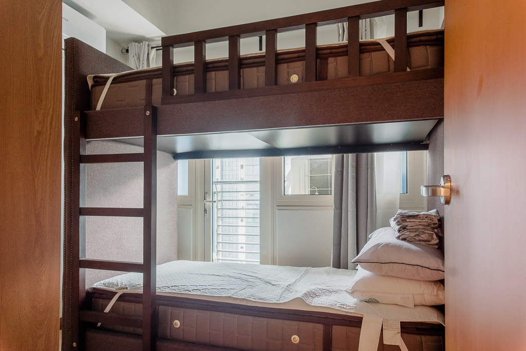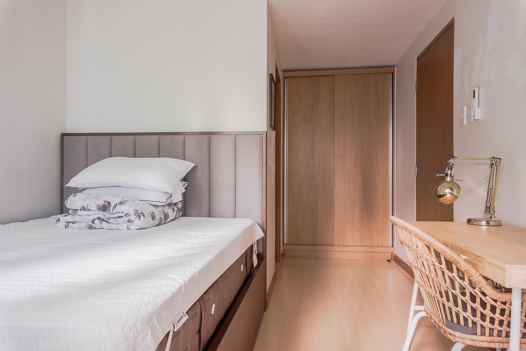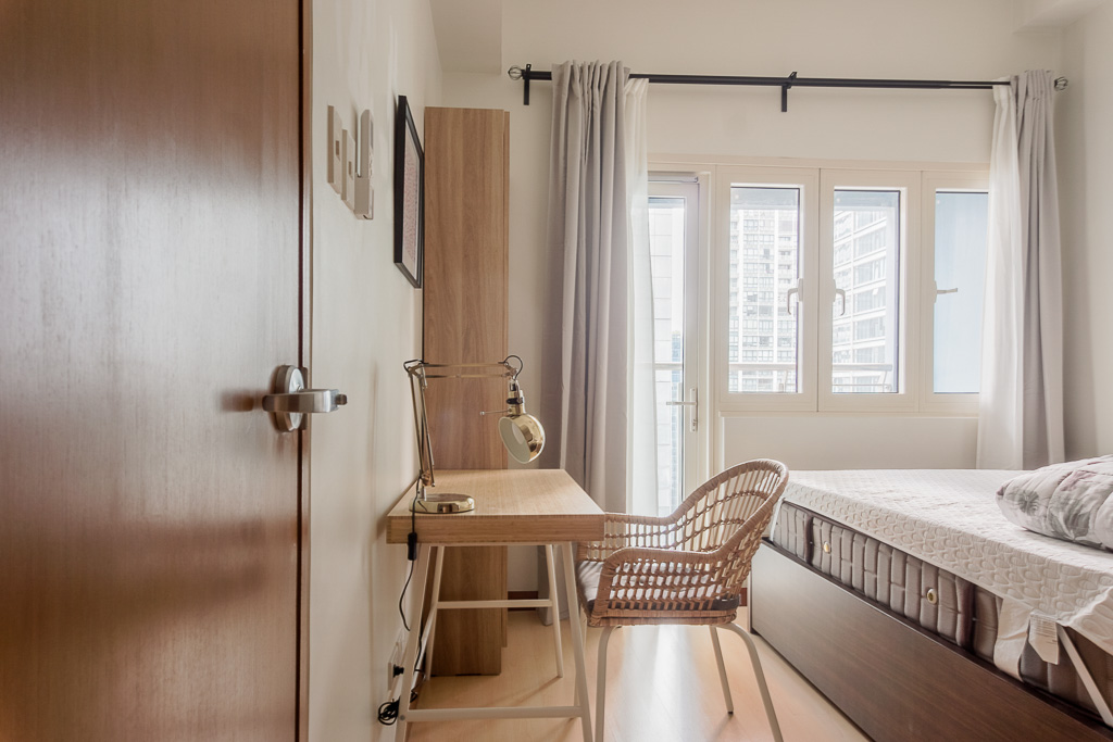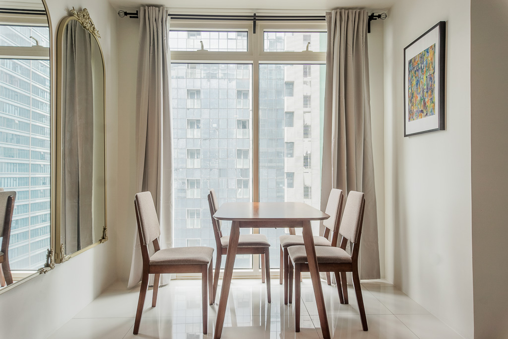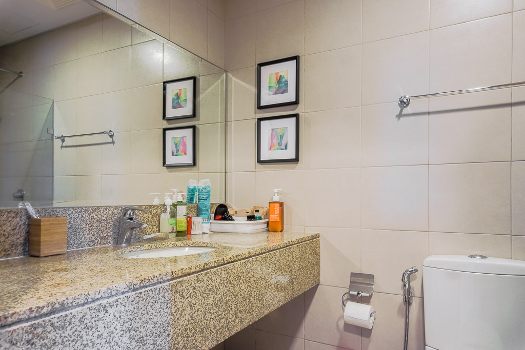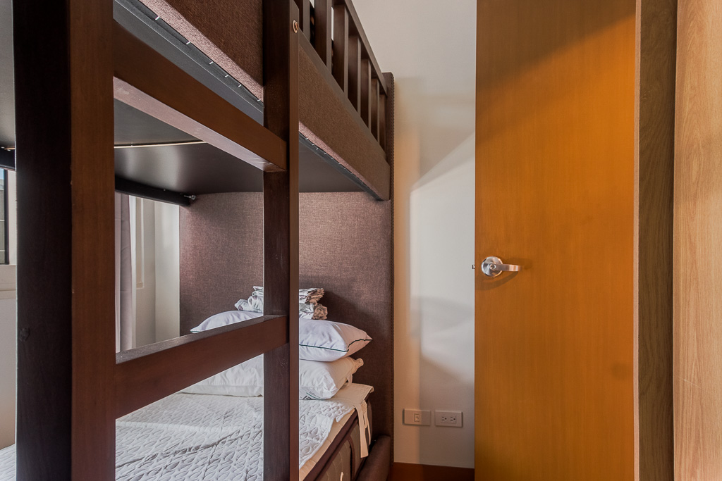 • Kitchen is equipped with two door refrigerator, water heater and range with range hood