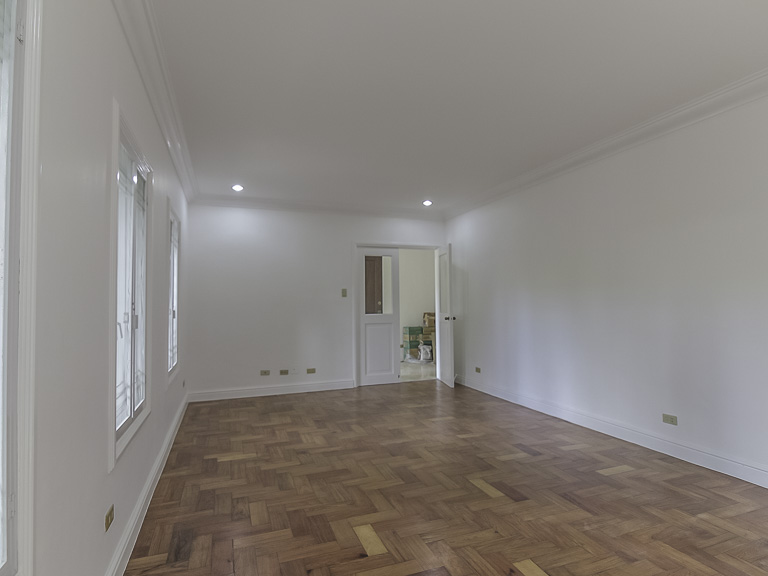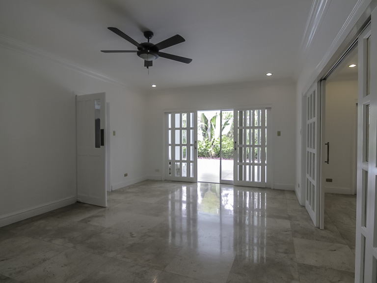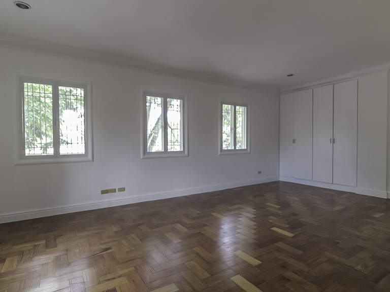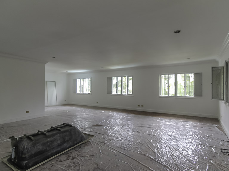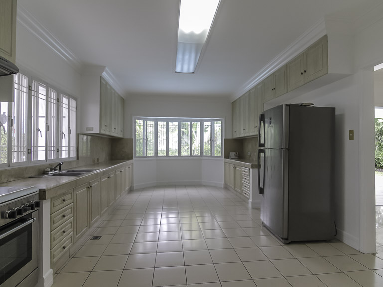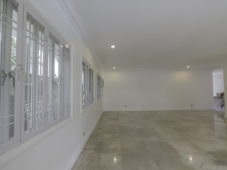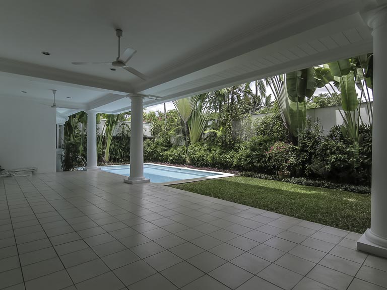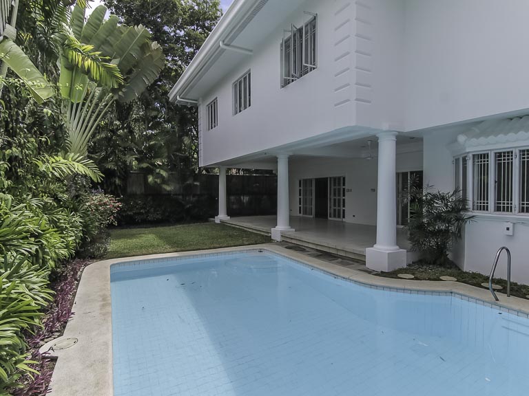 - A massive two-storey villa, with three bedrooms, swimming pool area, and concrete fencing; semi-furnished