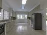 - The kitchen is connected to the dining hall via a two-way swinging door, and is equipped with a large cooking range with hood, two-door refrigerator, double sink, and plenty of cabinet space