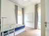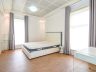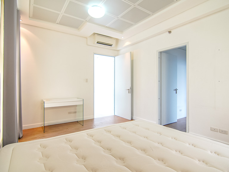 - The master bedroom is very large and houses a king sized bed, with upholstered headboard, cylindrical side tables, study desk, computer table, and provision for wall-mounted TV