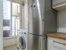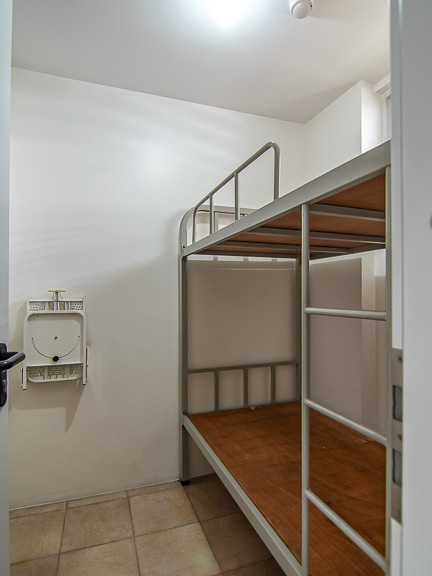 - A front load washing machine sits across the maid’s room that is equipped with a bunk bed, and folding ironing board