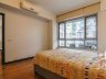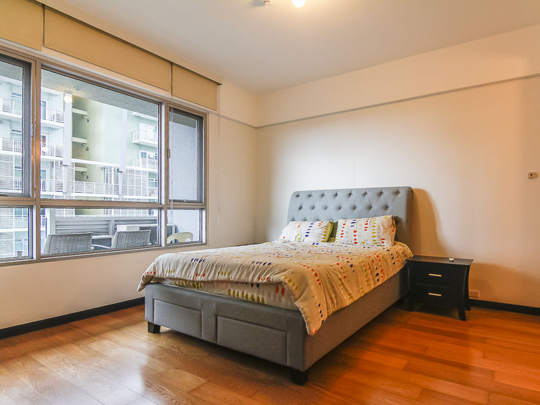 • Sleeping area provided of a bed with headboard and windows with blinds