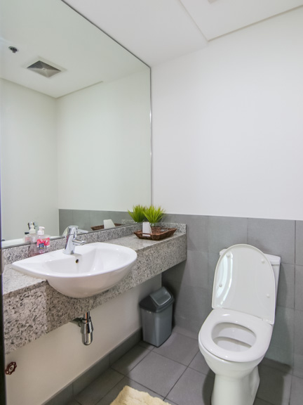• Spacious and quiet, with a warm ambiance due to the bright interior paint and excellent sound-proofing plus the unit facing the interior that does away with ambient city noise