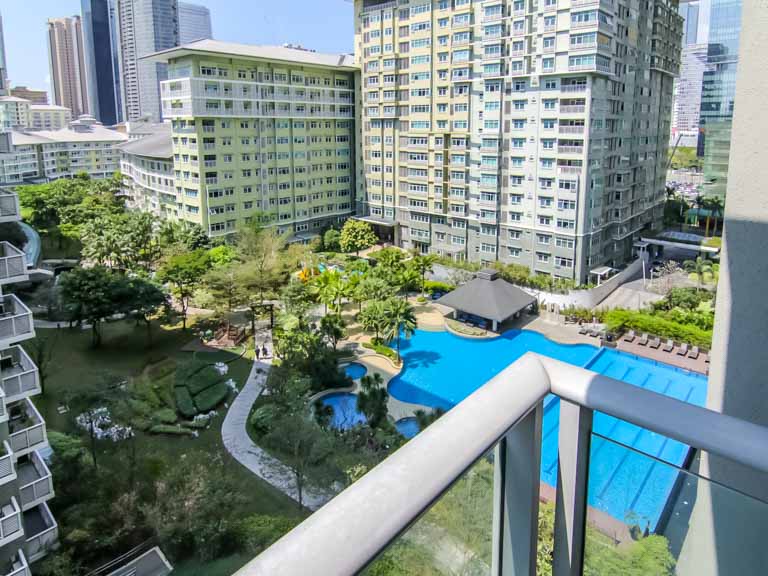 • Features a large balcony offering a view of the garden-like grounds of One Serendra
