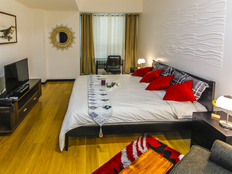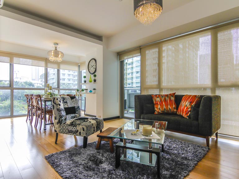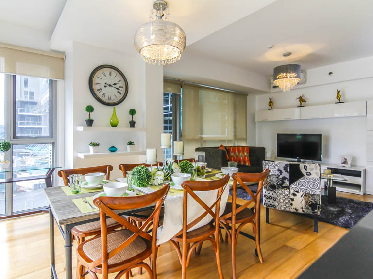 - Great combination of modern and rustic styled furniture in the living and dining areas, with access to a veranda facing Serendra amenities
