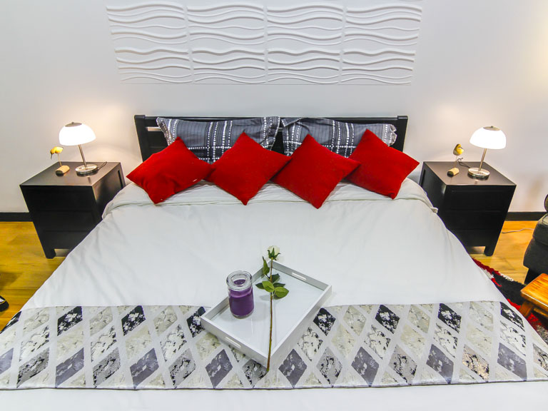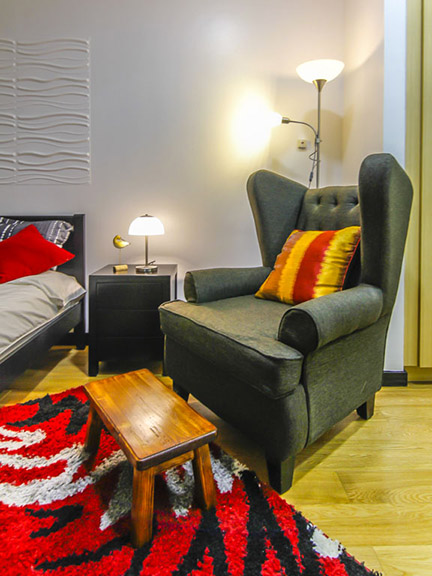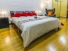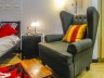 - Large master bedroom with queen size bed, reading chair with footstool, flat-screen TV and study desk