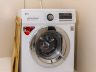 - Queen sized bed with pillows and linens, and wall mounted LED TV