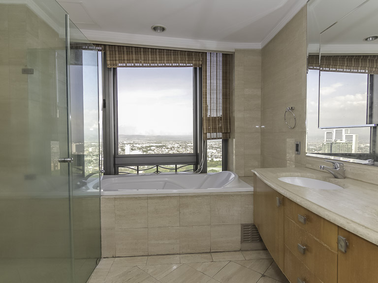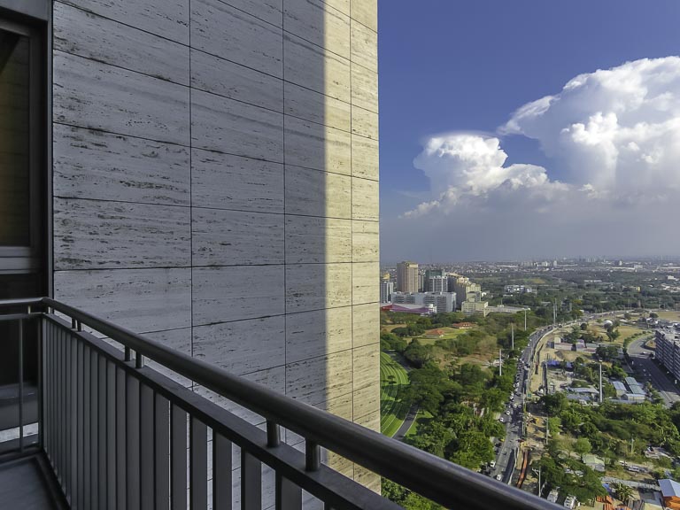 - An unobstructed view of the distant city skyline and the adjacent Forbes Park Residential district can be enjoyed from the balcony