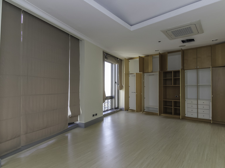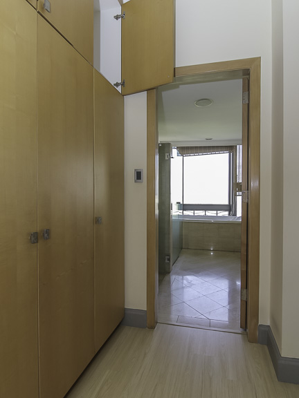 - The master bedroom is lavished with natural light and good ventilation from the entire length of one wall. Built-it wardrobe cabinets with bottom drawers and high cabinets line one wall