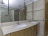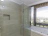 - The spacious master bathroom with a shower enclosure is enhanced by a full glass window is an alcove bathtub. The marble vanity counter cabinet sits a double under-mount sink