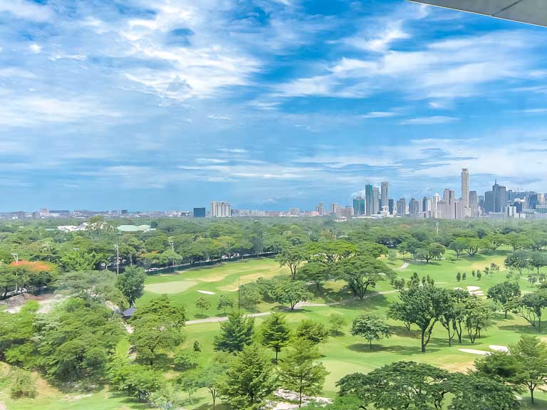 - A spectacular view of the Manila Golf Club of Forbes Park and the distant city skyline is a sight to behold right from the studio