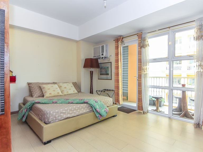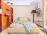- Full twin bed with pillows and linens provided, wooden floor lamp in sleeping area