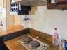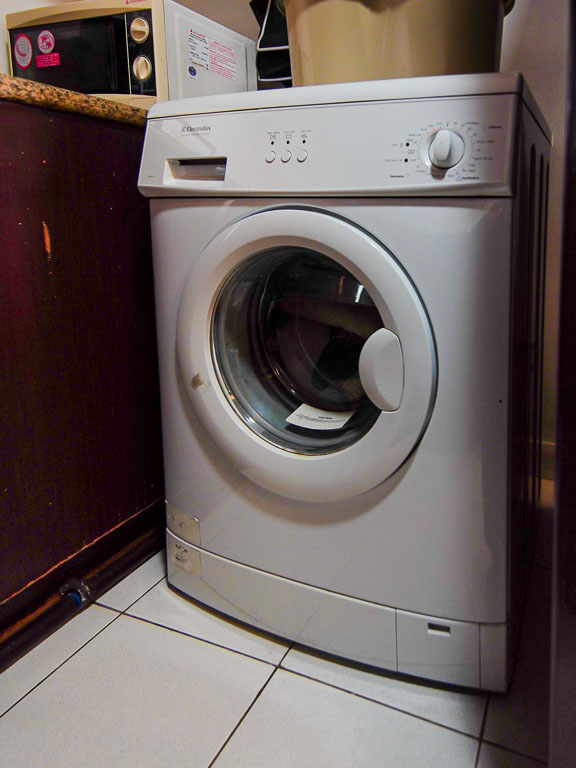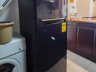 - The kitchen is fitted with a 2-door fridge, electric cooktop, range hood, microwave, and front load washer