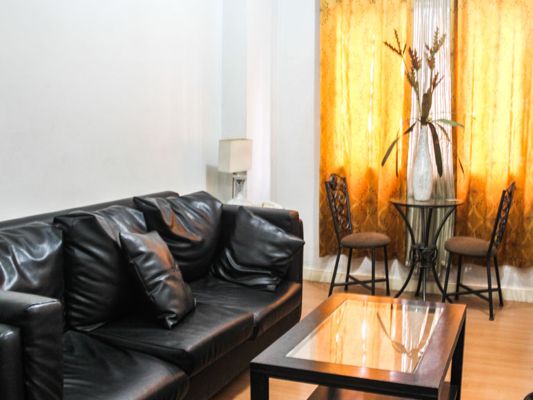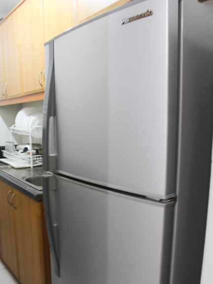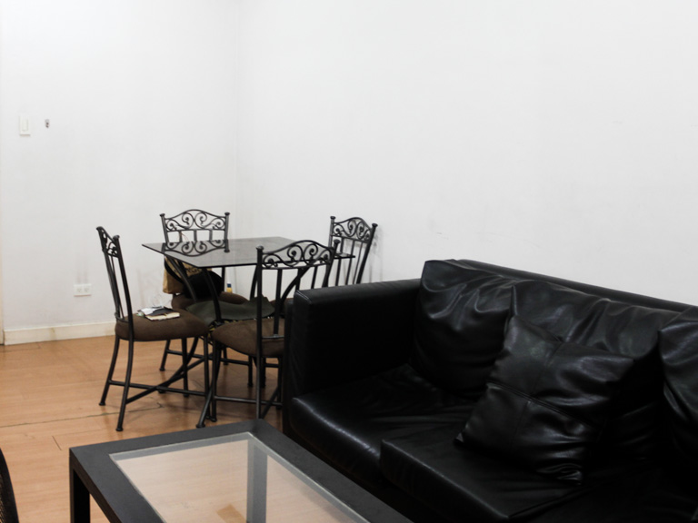 - The “bedroom,” features a queen-size bed and across the bed is the big window with a view of the neighboring towers. Under the window is the window-type air con unit