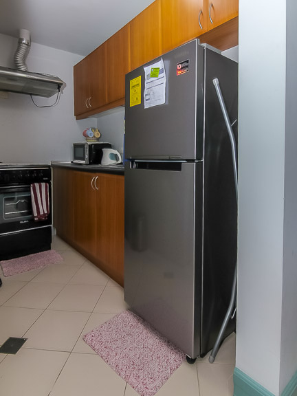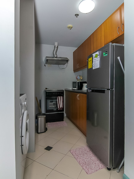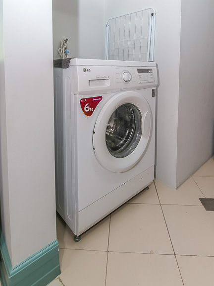 - By the entrance to the kitchen is the washing machine, almost adjacent with the refrigerator