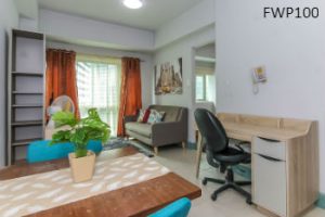 - This unit is in cloud paint interior and matte tile flooring. The bedroom is with shiny wood flooring