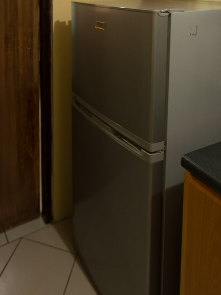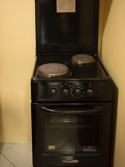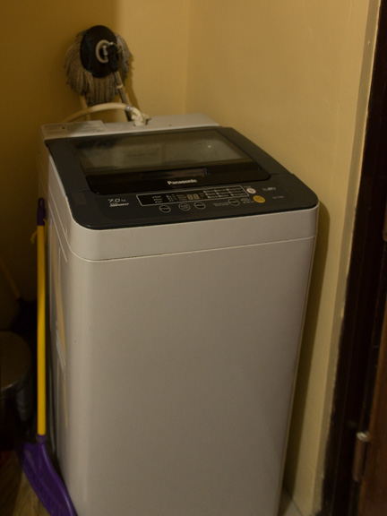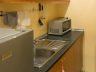 - Kitchen fitted with two-door fridge, electric cooktop with range hood, microwave and washing machine