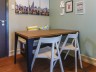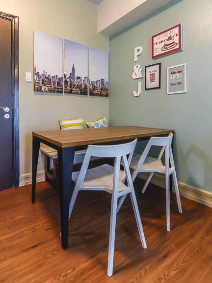• Bright teal color theme, modern and rustic furniture give a calming and inviting ambiance
