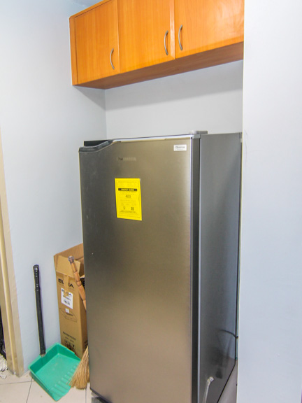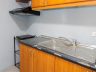 • The kitchen is equipped with an induction stove, range hood, microwave oven, and refrigerator
