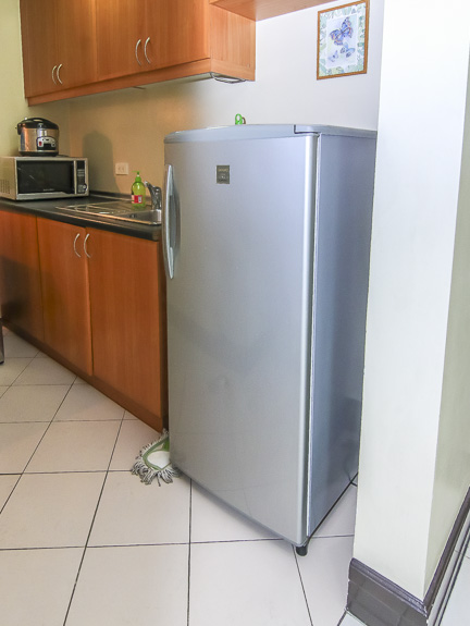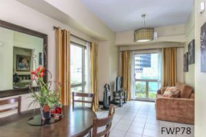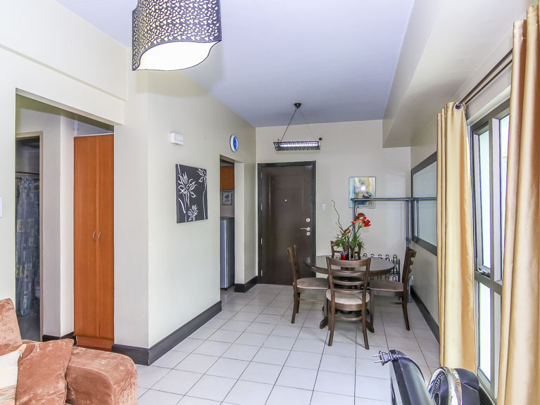 - This fully furnished unit is in cloud and blush paint interior, and tiled flooring. The bedroom is in wood-like vinyl flooring