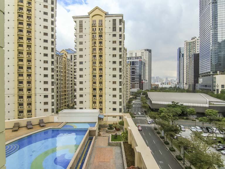 - From the unit’s windows one can see the swimming pool below and the neighboring towers