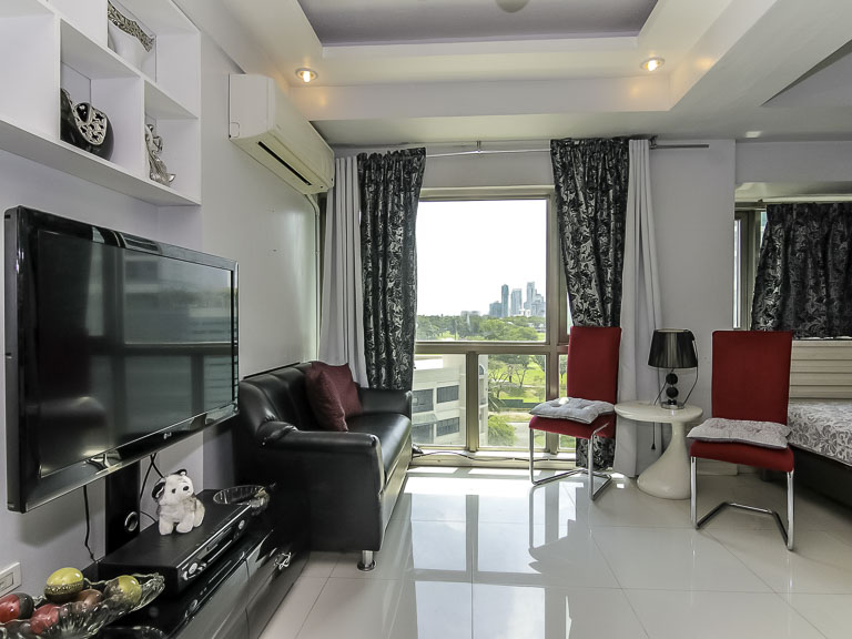 - Good ventilation and natural lighting from full glass panel windows, mirror-accent walls enhancing the studio unit