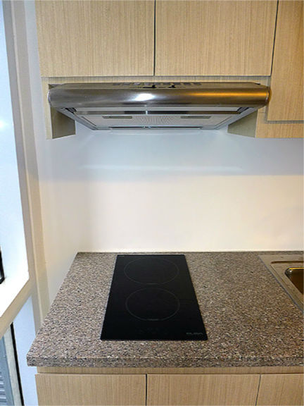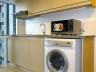 - A side kitchen with induction cooker, 2 door refrigerator, microwave and washing machine