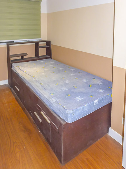 - Large twin size captain’s bed in master bedroom, single captain’s bed in second bedroom