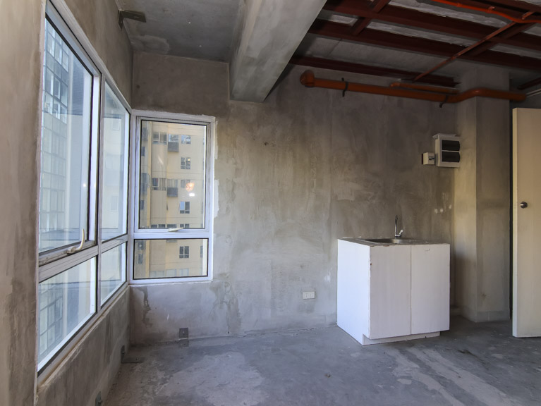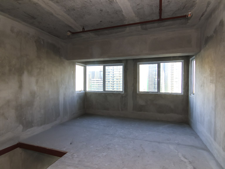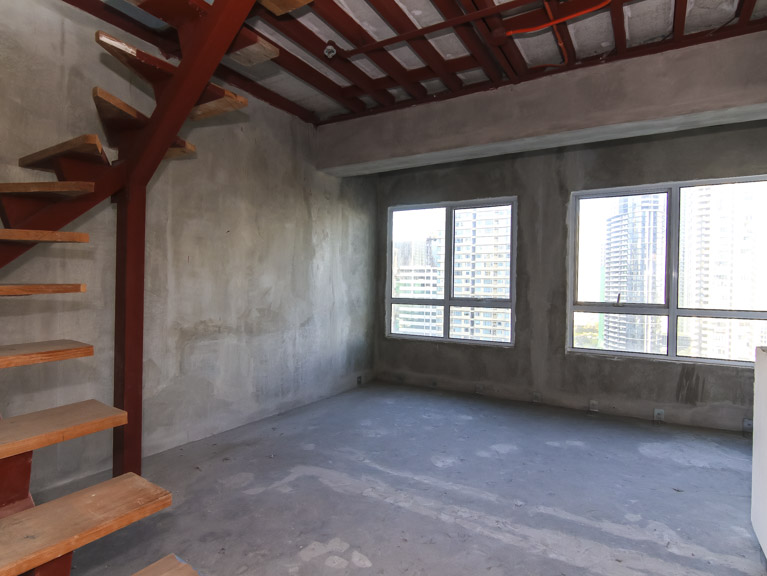 - An unfurnished, 2-bedroom loft type condo apartment with parking slot