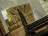 - A vertical mirror is on the wall post right in front of the stairway landing