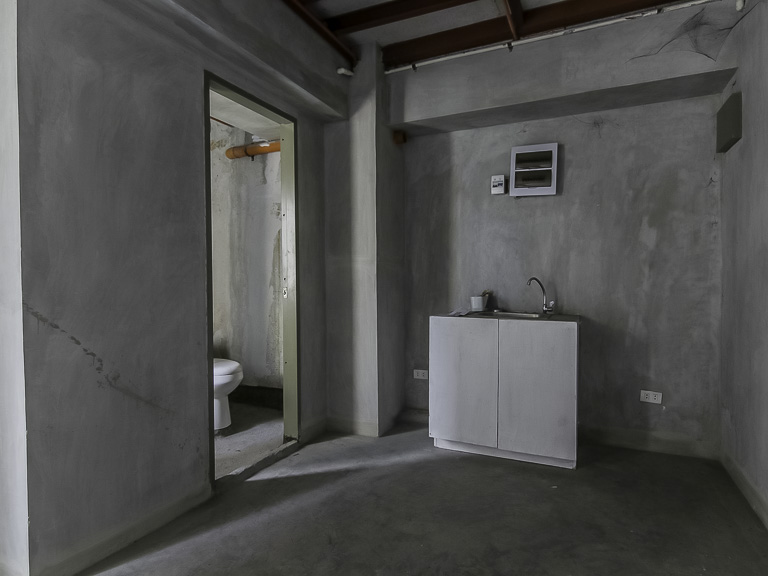 • Open corner kitchen with a single sink and space provisions for electrical appliances