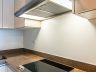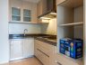 - Kitchen area is equipped with ceramic cooktop with hood, microwave, and two-door ref