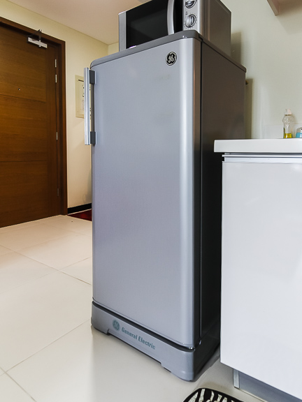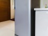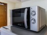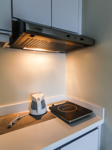 - Refrigerator, microwave, and induction stove with hood in kitchen