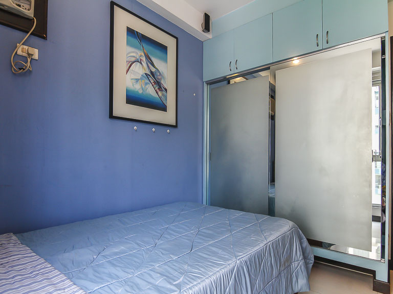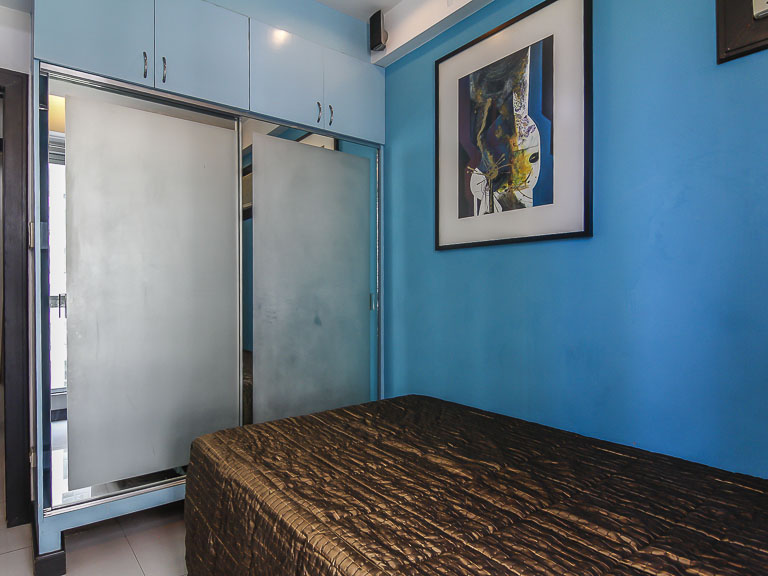 - Master bedroom has a queen size bed with upholstered headboard, and closet with secret walk-in space towards the back