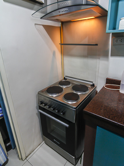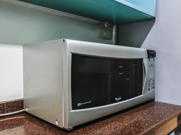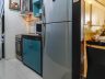 - Two-door refrigerator, electric range with range hood and microwave in the kitchen