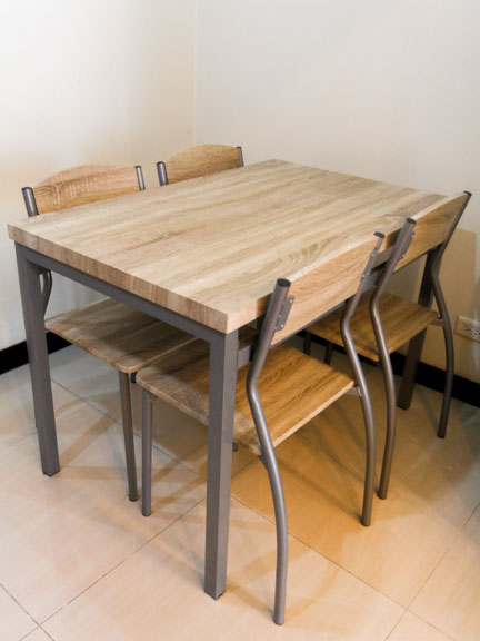 • At the corner just outside the bedroom entry way if the four sitter vinyl-coated dining set