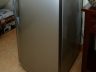- To the right from the door is the refrigerator and a wooden table under the stairway, and to the left is the L-formation kitchen with salt-and-pepper granite counter tops, maple-syrup colored cupboards, and base cabinets