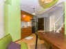 - Features a predominantly green and white colored interior paint paired with high quality wood furniture gives off a unique but welcoming ambiance