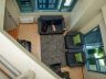 - Big tinted windows with cadet-blue panels temper the bright sunlight in this low-level unit