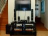 - The living and dining rooms are in a continuous layout. Dark colored furniture dominates both rooms