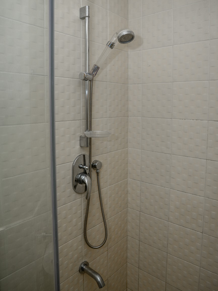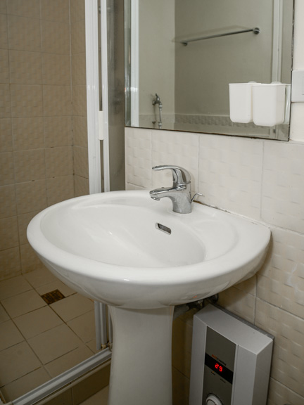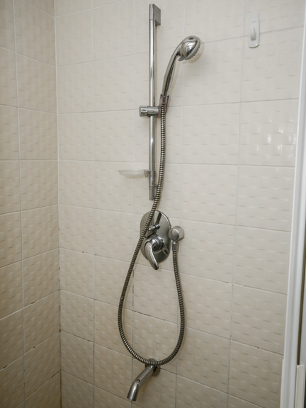 - The two bathrooms have each a pedestal sink, shower enclosure and a hand-held shower and a shower water heater
