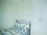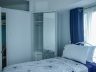 - Downstairs bedroom houses a twin bed and mirrored sliding door cabinet