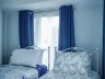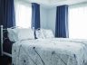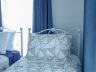 - Features a traditional interior design with a blue and white theme that invokes calm and relaxation