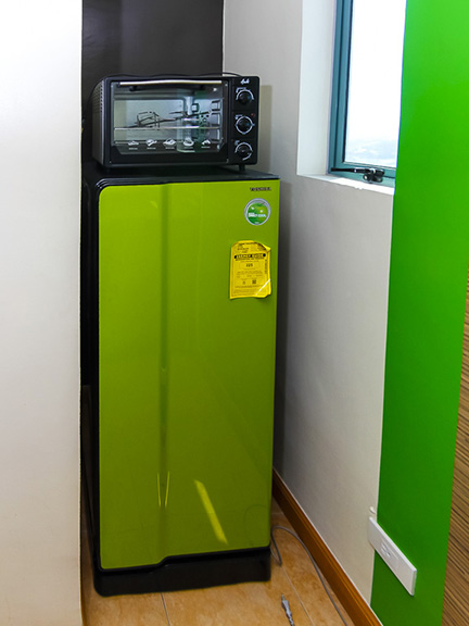- Electric range with hood,oven toaster and branded green refrigerator