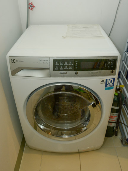 - Utility closet next to the kitchen houses an automatic front load washing machine